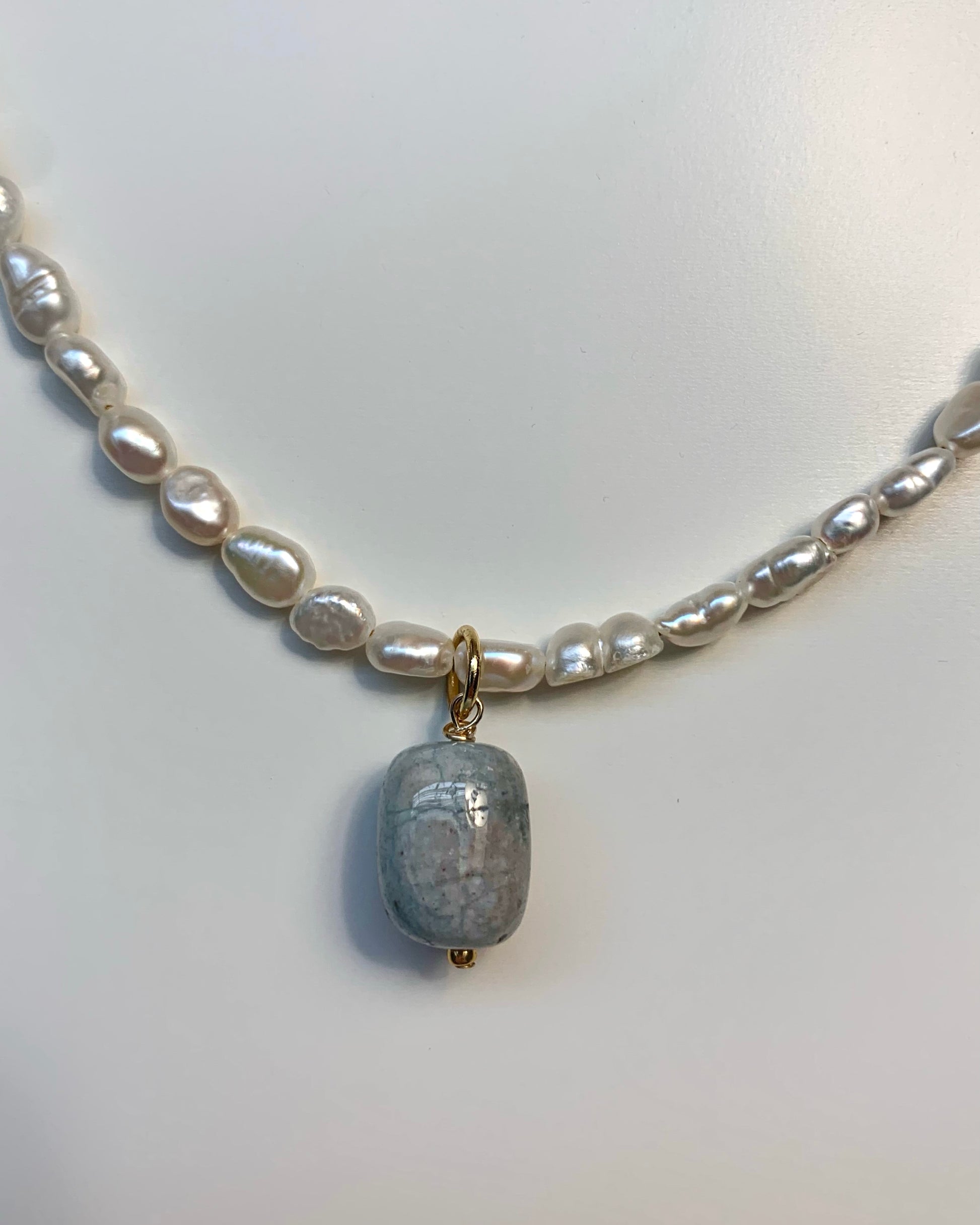Freshwater pearl necklace with aquamarine gemstone pendant 🩵✨