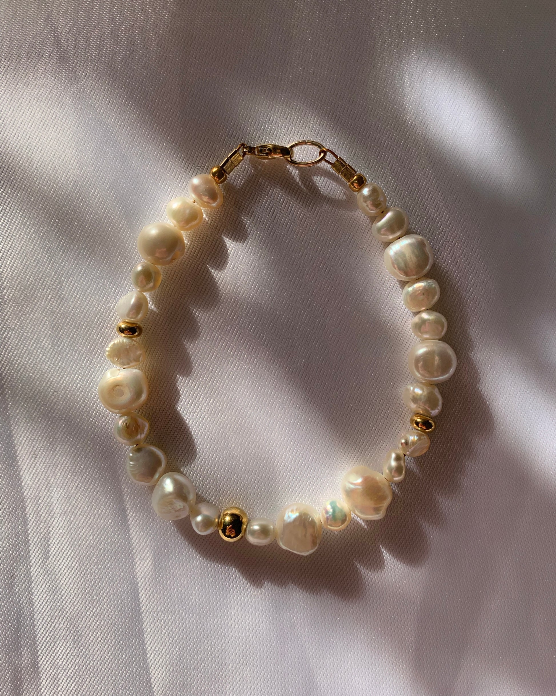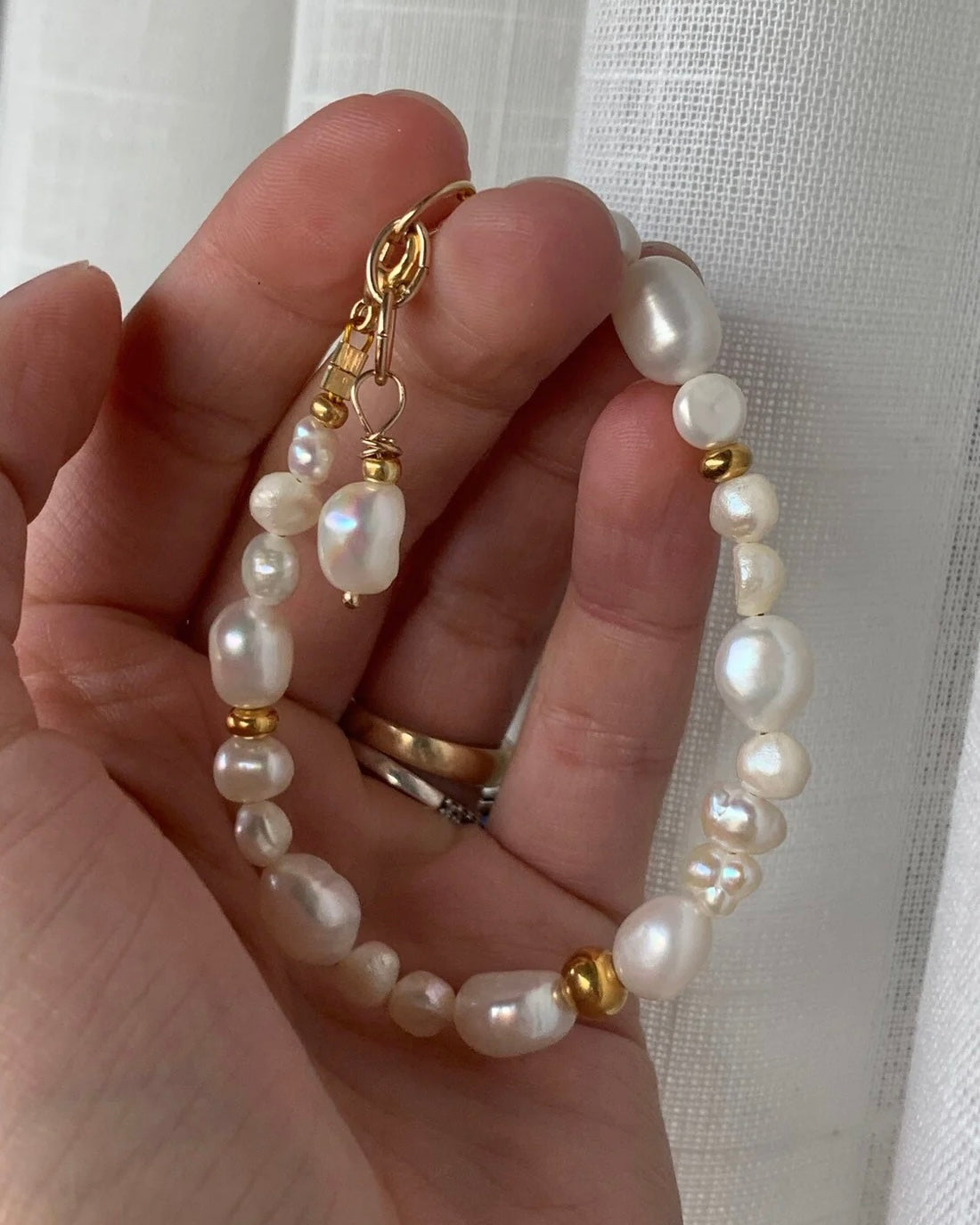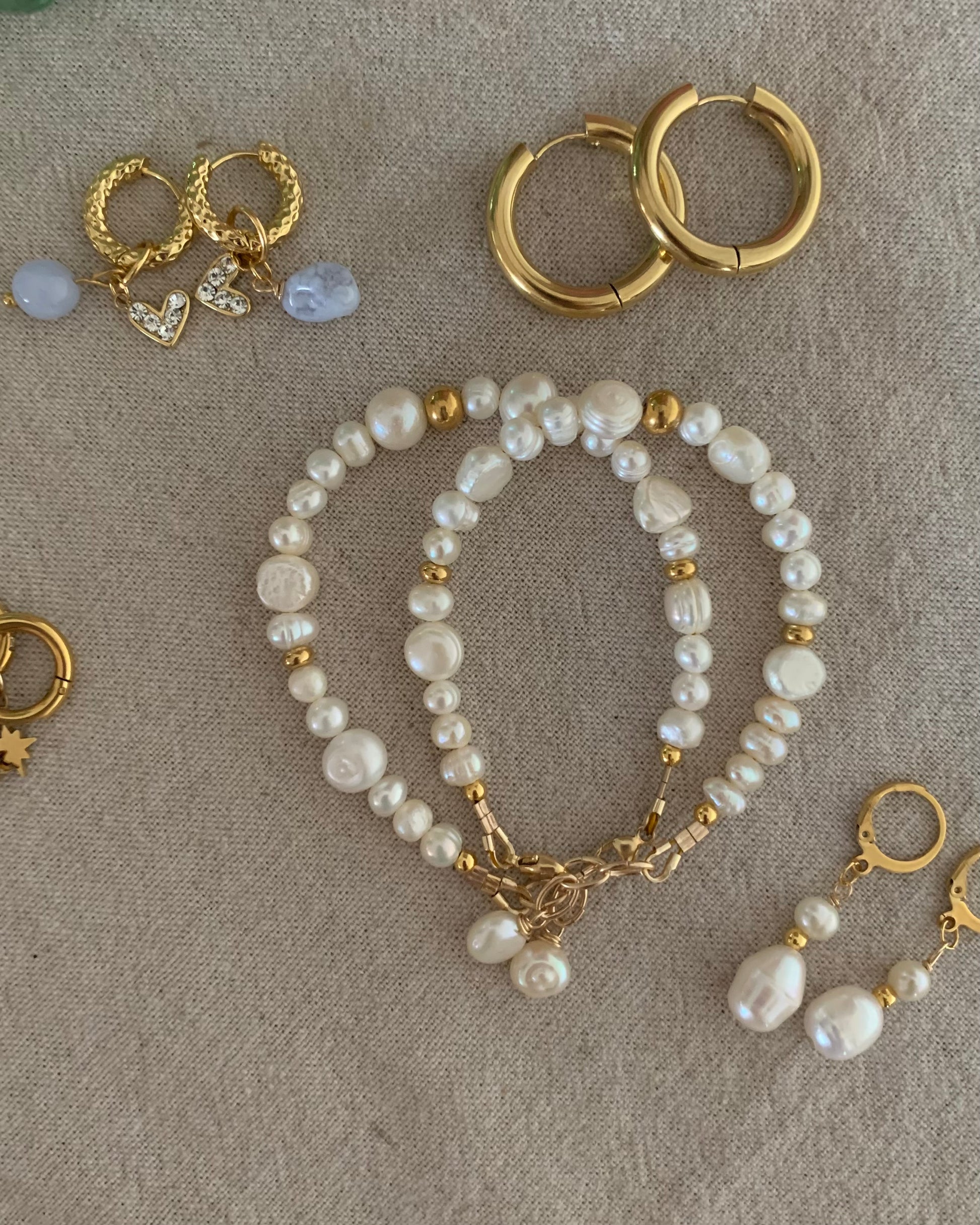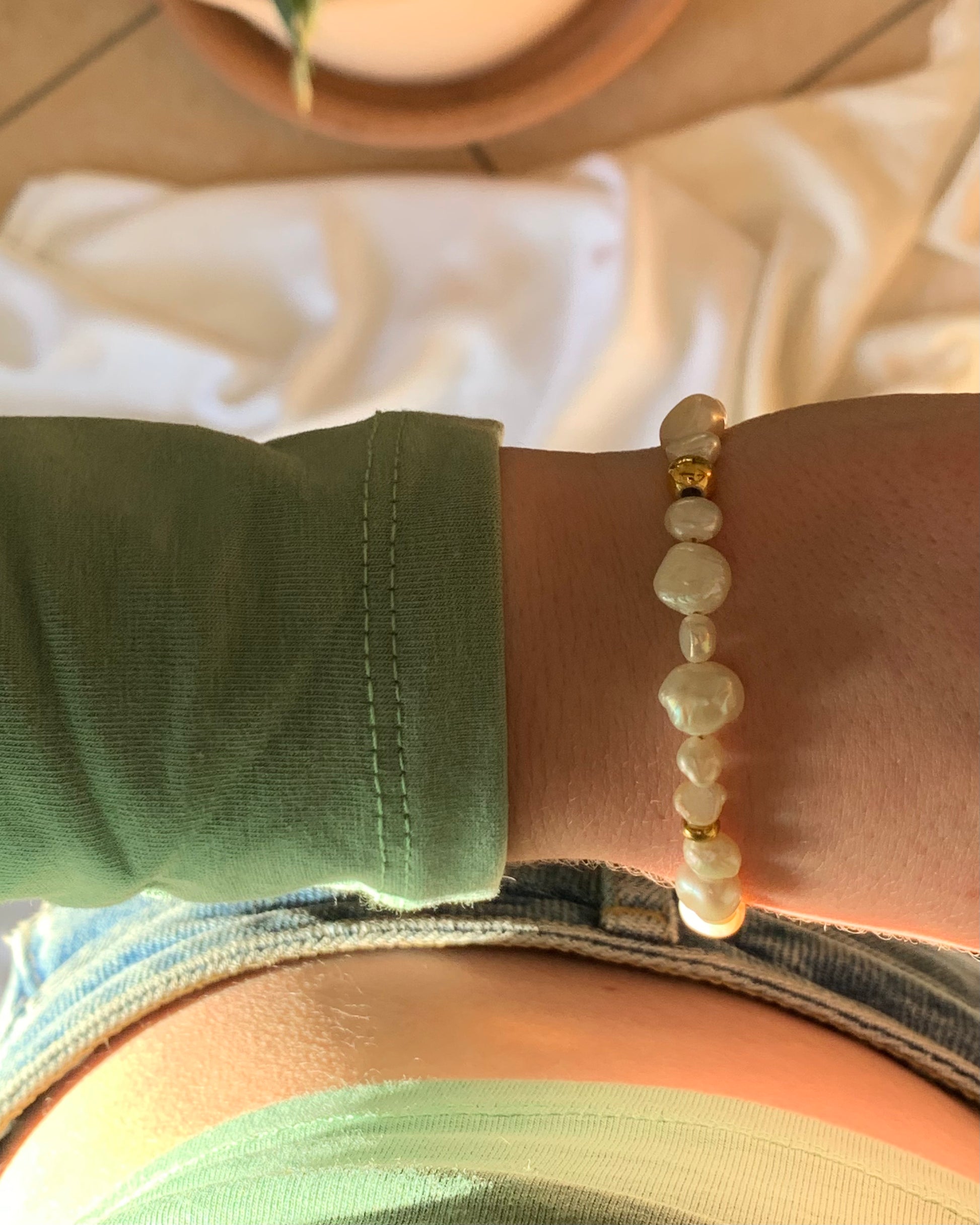 Süßwasserperlen Armband mit Golddetails und hochwertigem 14 Karat gold filled Verschluss.