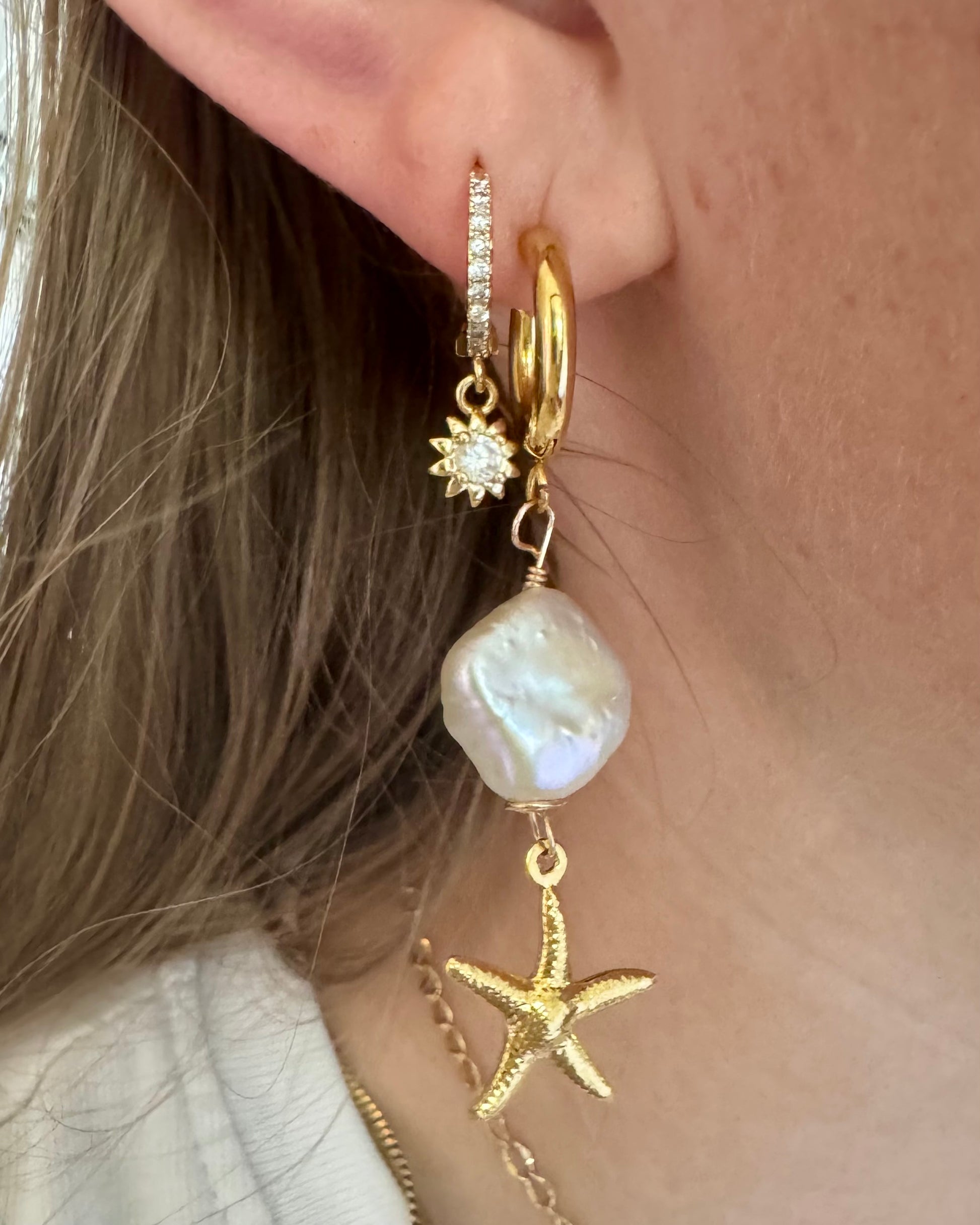 Goldene Creolen mit Süßwasserperlen & Seestern-Anhänger – inspiriert vom Meer.