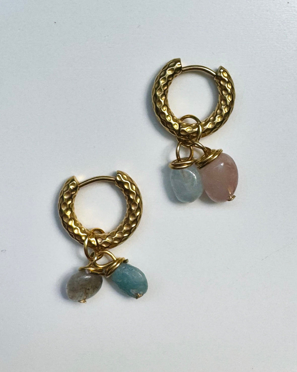Ohrringe aus vergoldetem Edelstahl 🌟 Mit zarten Anhängern aus Natursteinen, die jedem Look einen einzigartigen Touch verleihen. Die Creolen sind nickelfrei und rostfrei – perfekt für empfindliche Ohren und den täglichen Gebrauch ✨