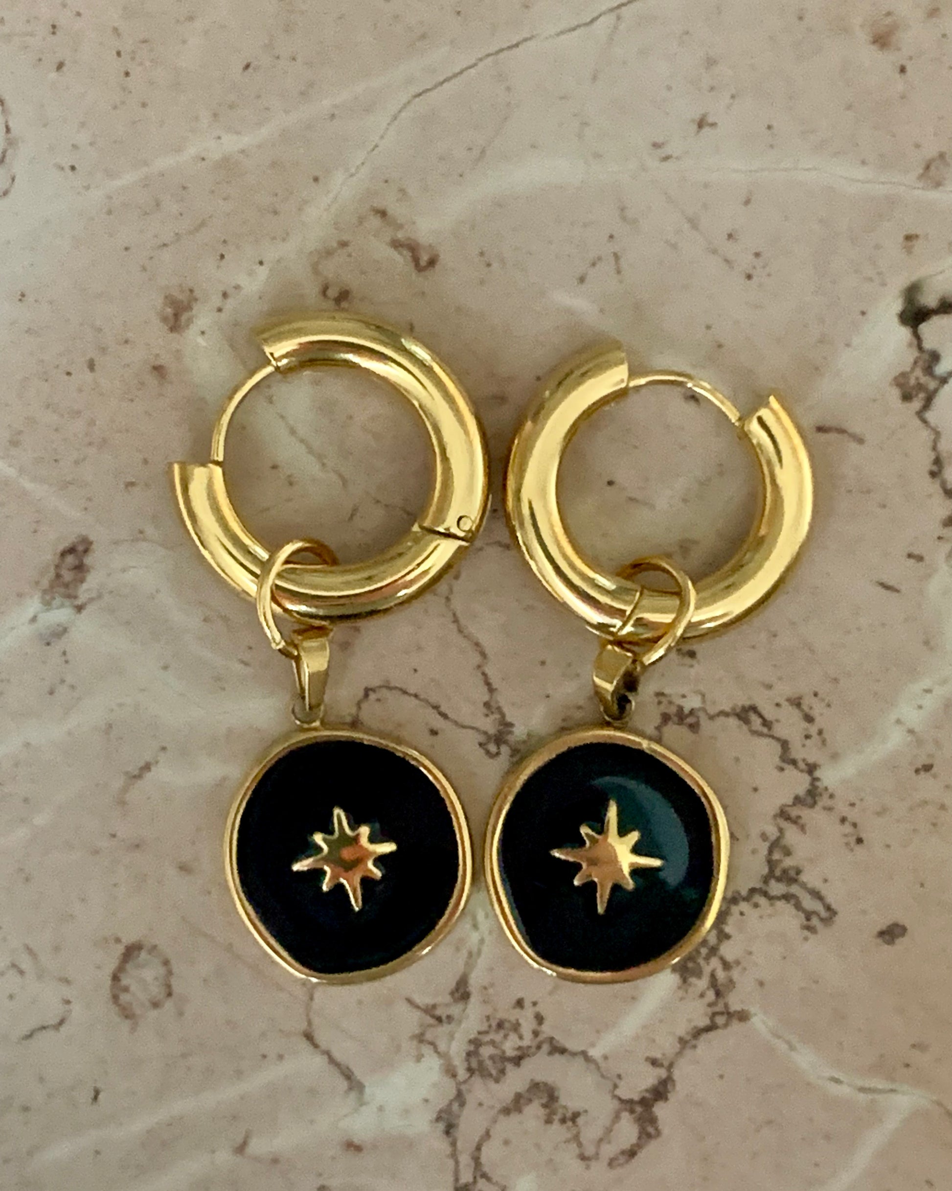 Goldene Creolen mit Sternanhänger. 18Karat vergoldeter Edelstahl. 🖤✨