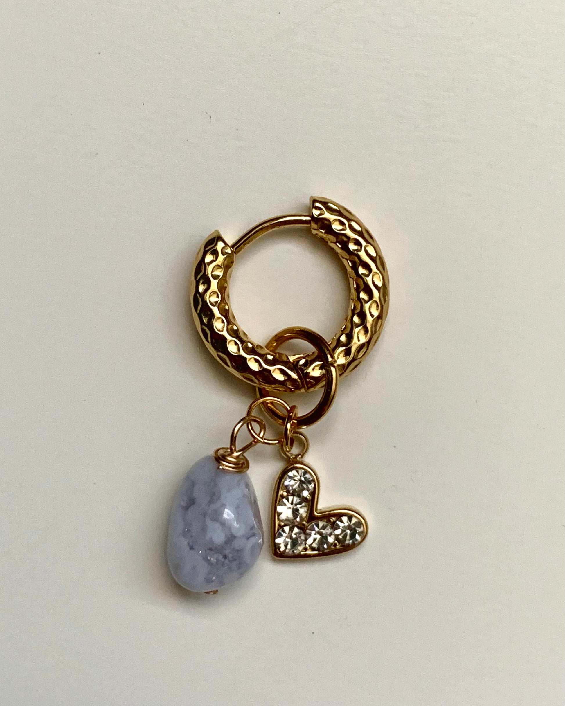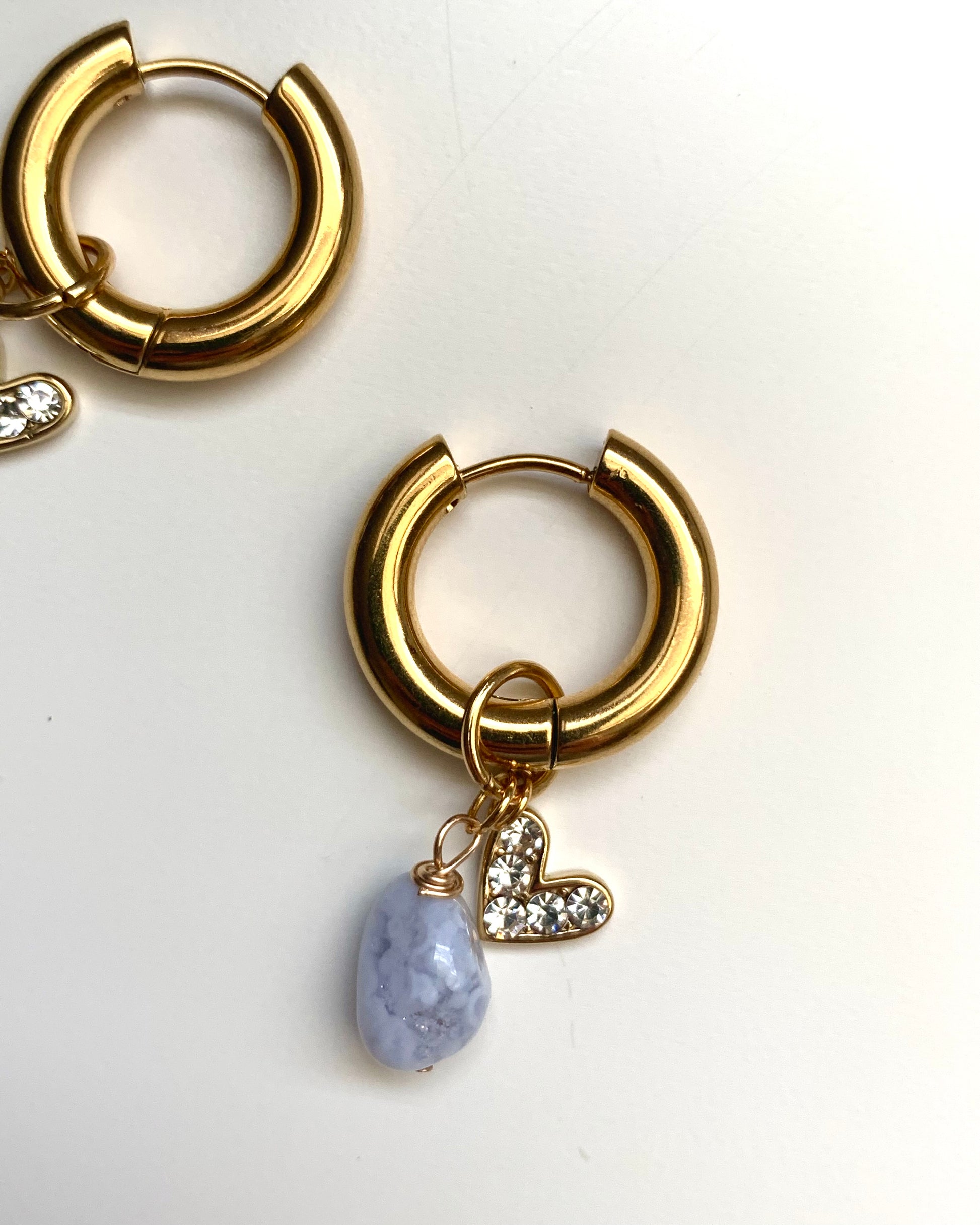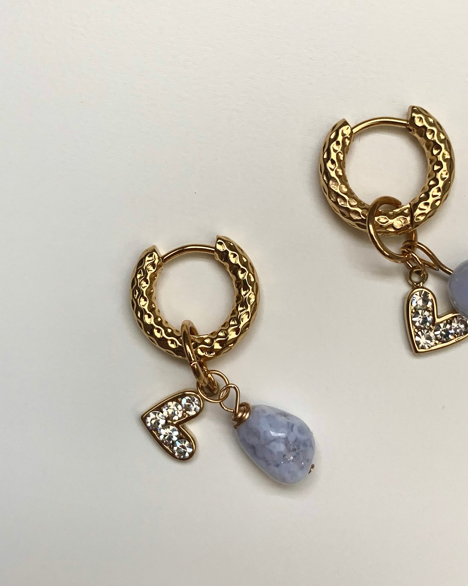 Goldene gemusterte Creolen mit Aquamarin und Herzchen Charm. 💖 Nickelfrei!
