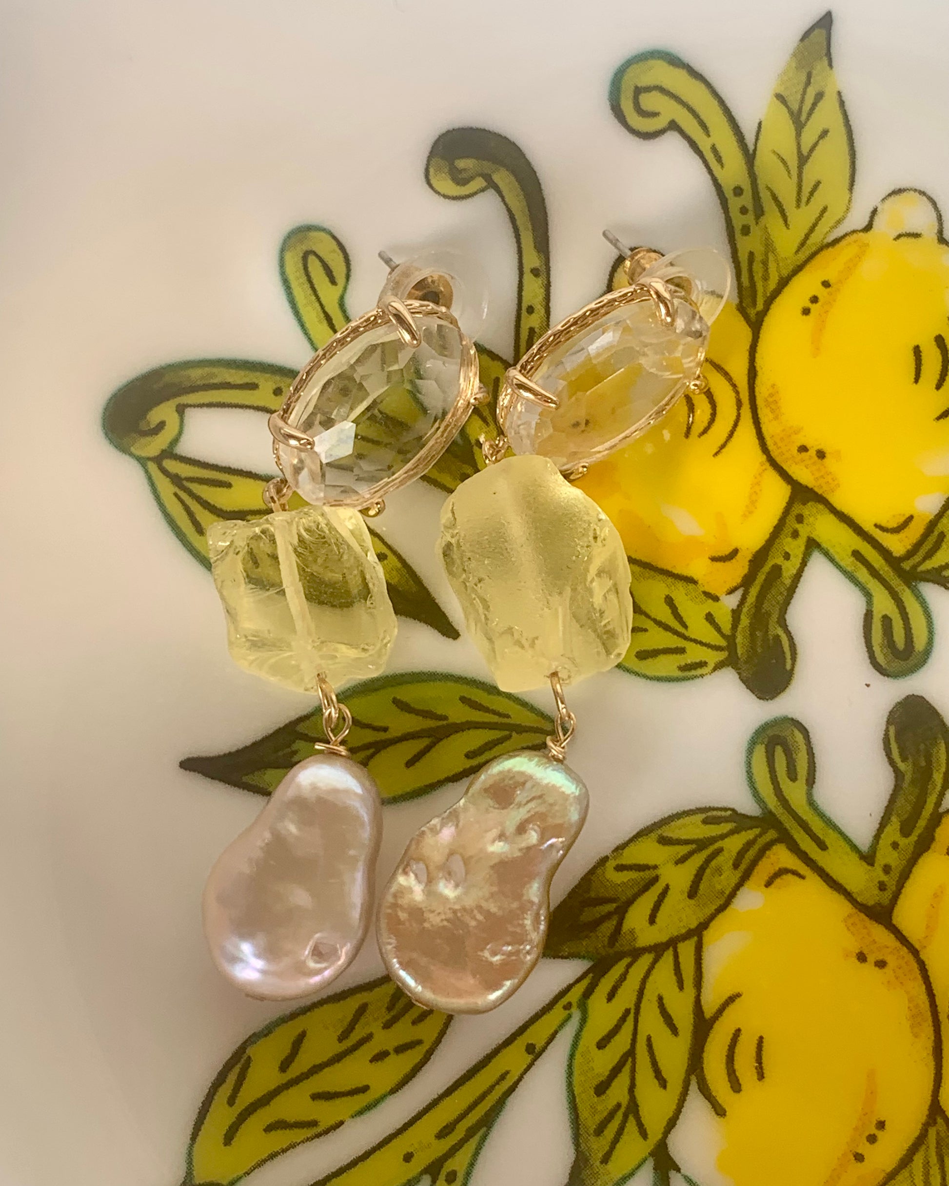 Statement Ohrringe mit gelben Natursteinen und Süßwasserperlen 🍋 perfekt für den Sommer 🌊
