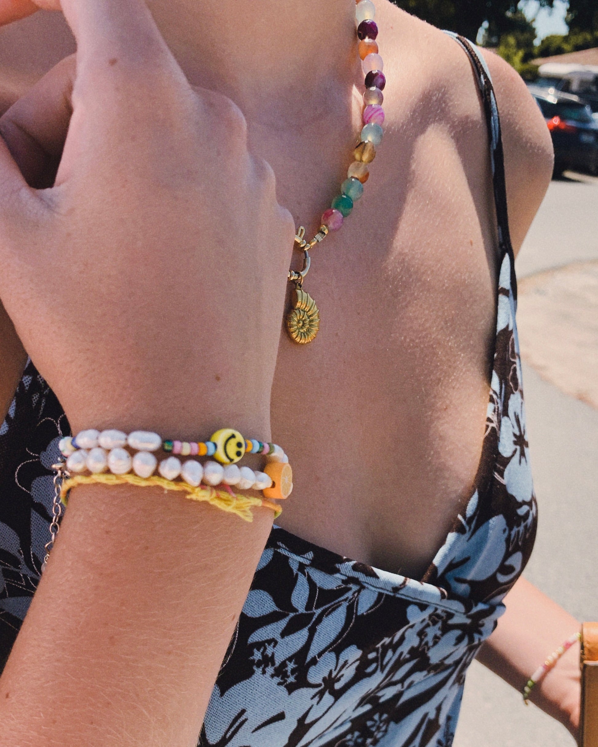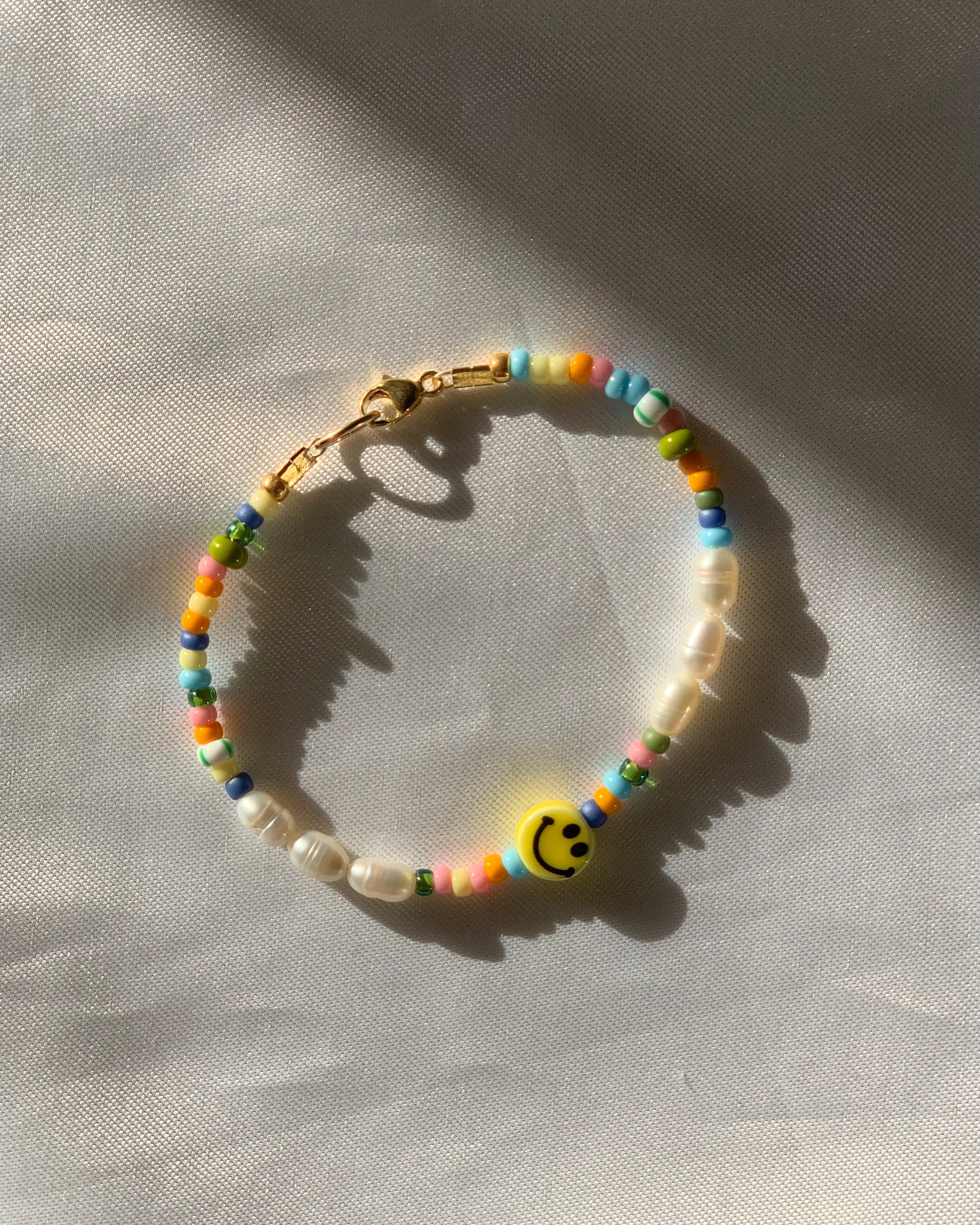Aus Miyuki-Perlen, Süßwasserperlen und einer Muschelperle mit Smiley-Motiv gefertigt, ist dieses Armband der perfekte Begleiter für den Sommer. Der hochwertige Verschluss aus 14 Karat Goldfilled-Material rundet das Design perfekt ab und garantiert, dass du lange Freude an deinem neuen Lieblingsaccessoire haben wirst.