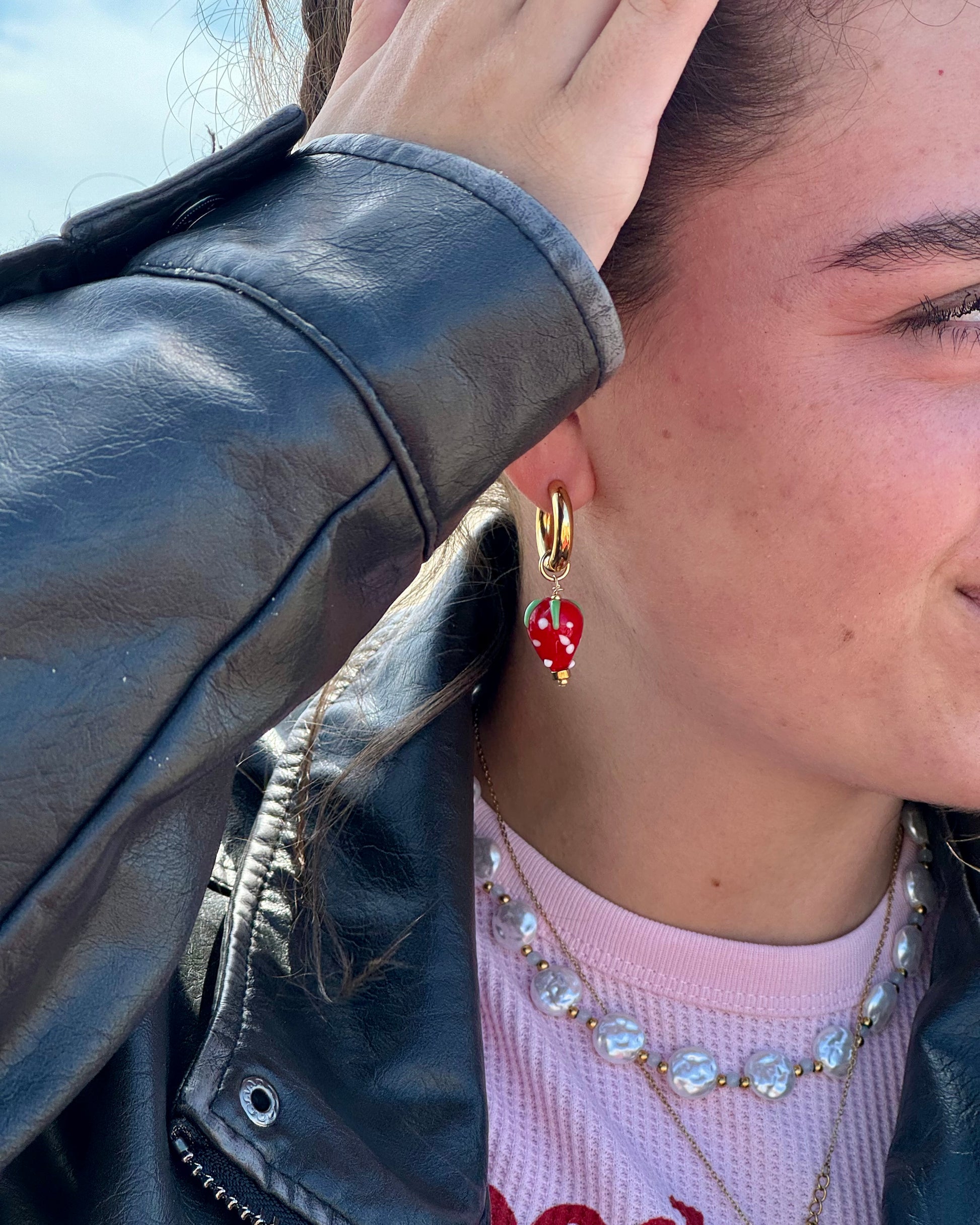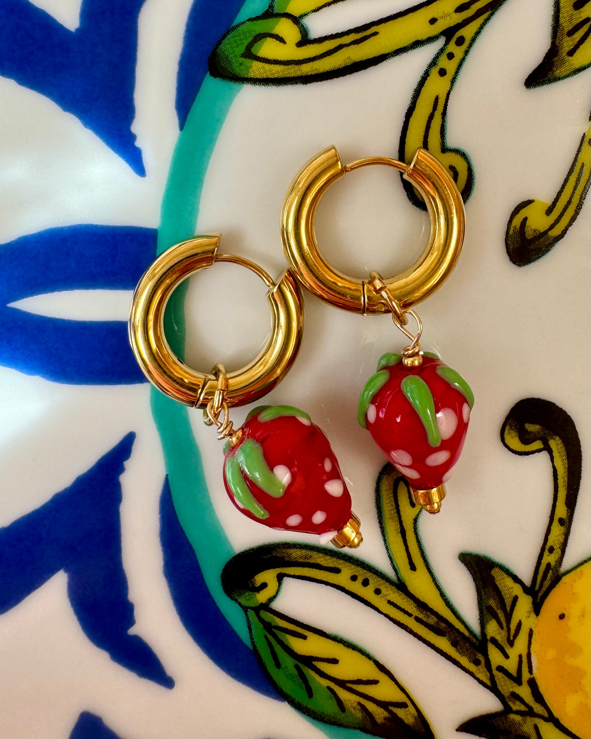 14k vergoldete Edelstahl Creolen mit Erdbeer-Anhänger 🍓